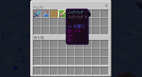 ノックバック剣(レベル100)とか説明欄があるアイテムとかあります。